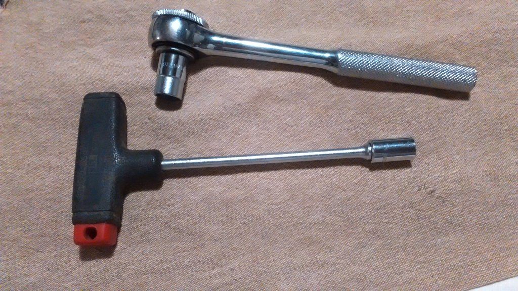 - 工具。ボックスレンチ10mm (アンダーガード用) 。12mm (ドレンボルト用) 。14mm (オイルフィラーキャップ用) 。六角レンチ6mm (オイルフィルターのドレンボルト用)