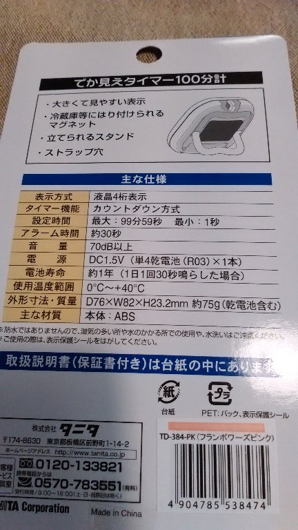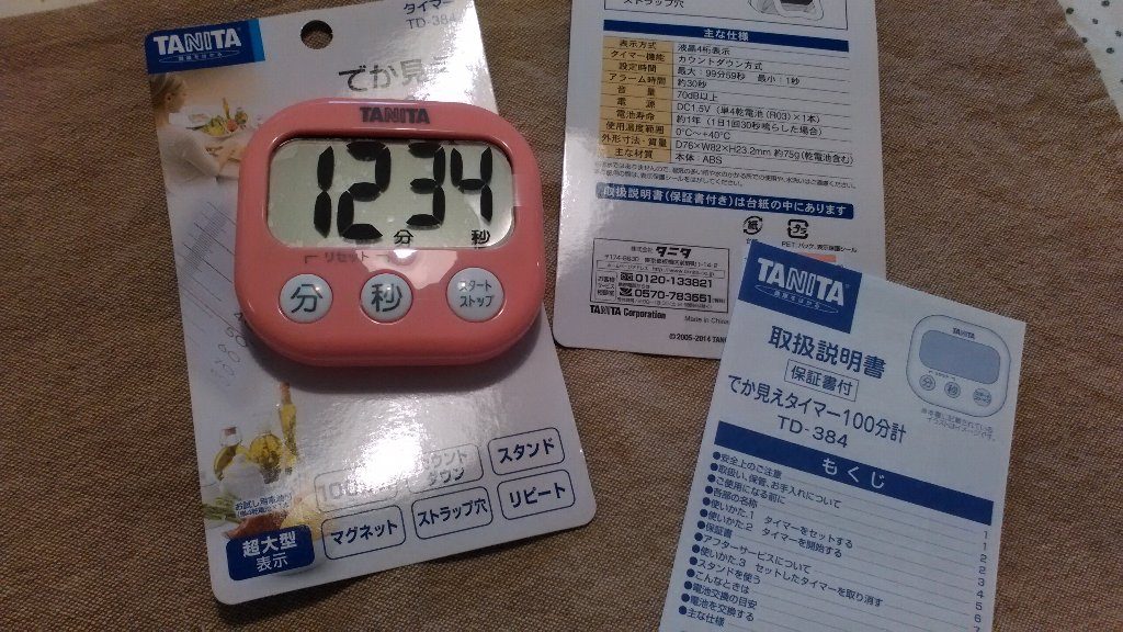 「キッチンタイマー」「タニタ」「100分計」「TD-384」