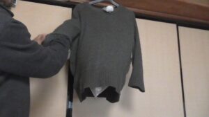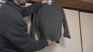 体操着など1着しかなくて、あした使うというようなときは、脱水したら乾いたバスタオルで海苔巻きのようにくるんでからそのまま絞ります。