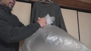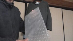 袖と脇の下も乾かないので、プチプチなどを脇の下まで入れます。
