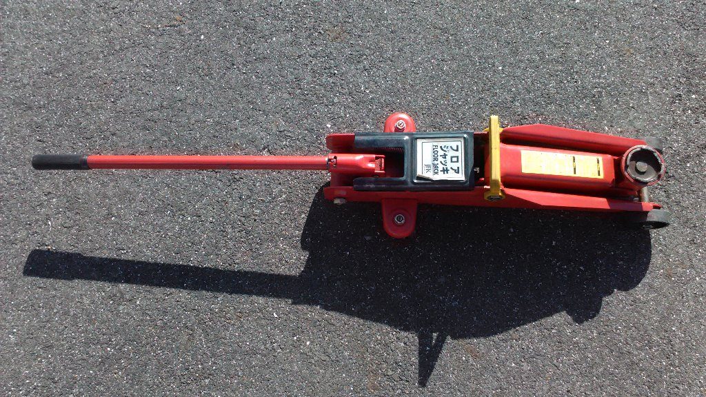 フロアジャッキ。意外と安いけど、携帯するには嵩張るし重いです。