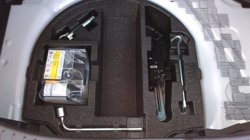 工具とパンク修理セット。電動ポンプまでついてます! ちなみにこの車の場合、スペアタイヤがありません!