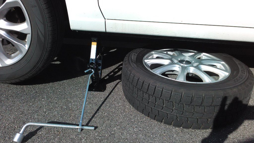 「タイヤ交換」「ジャッキ」「トルクレンチ」「パンク」