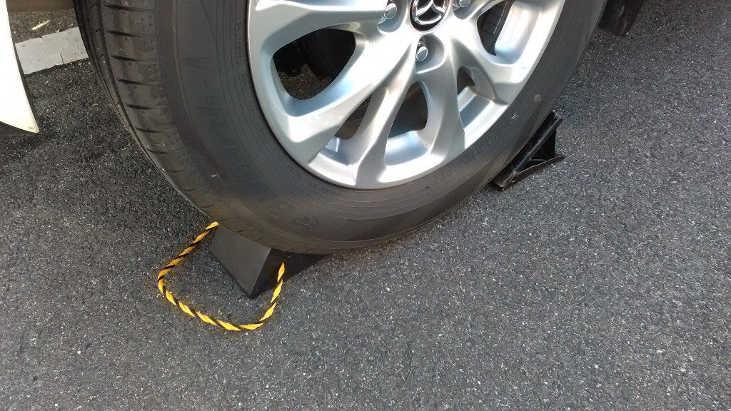 輪止め (chock) タイヤストッパー、タイヤ止め。車載工具に入っていれば買う必要はありません=^^=