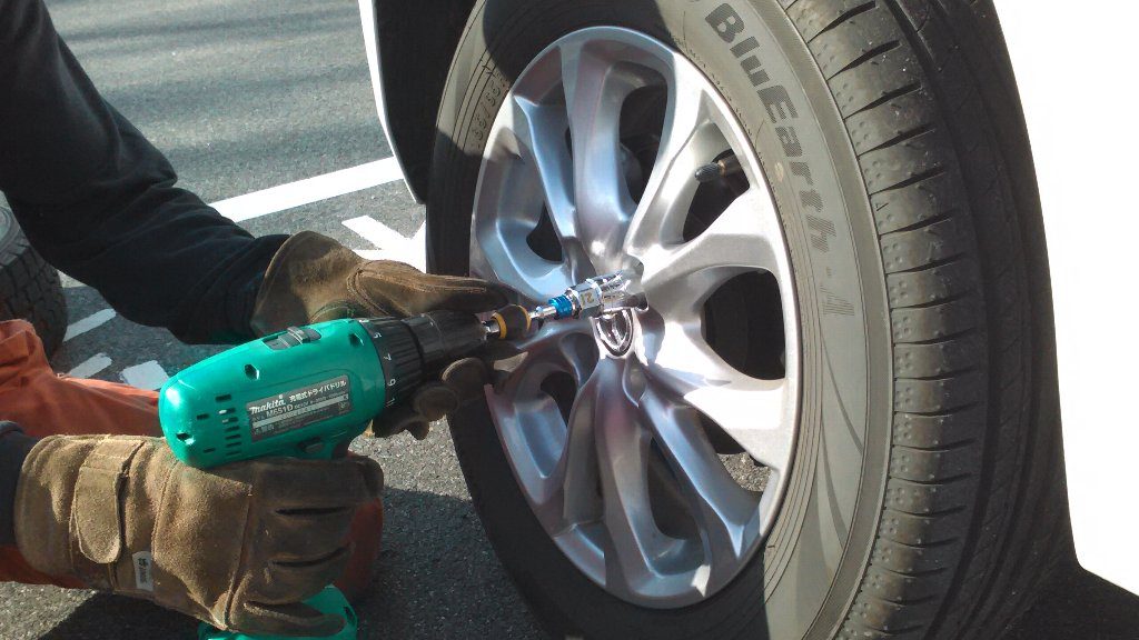 - ボトルを逆さにして中身を充分タイヤに送りこむ。